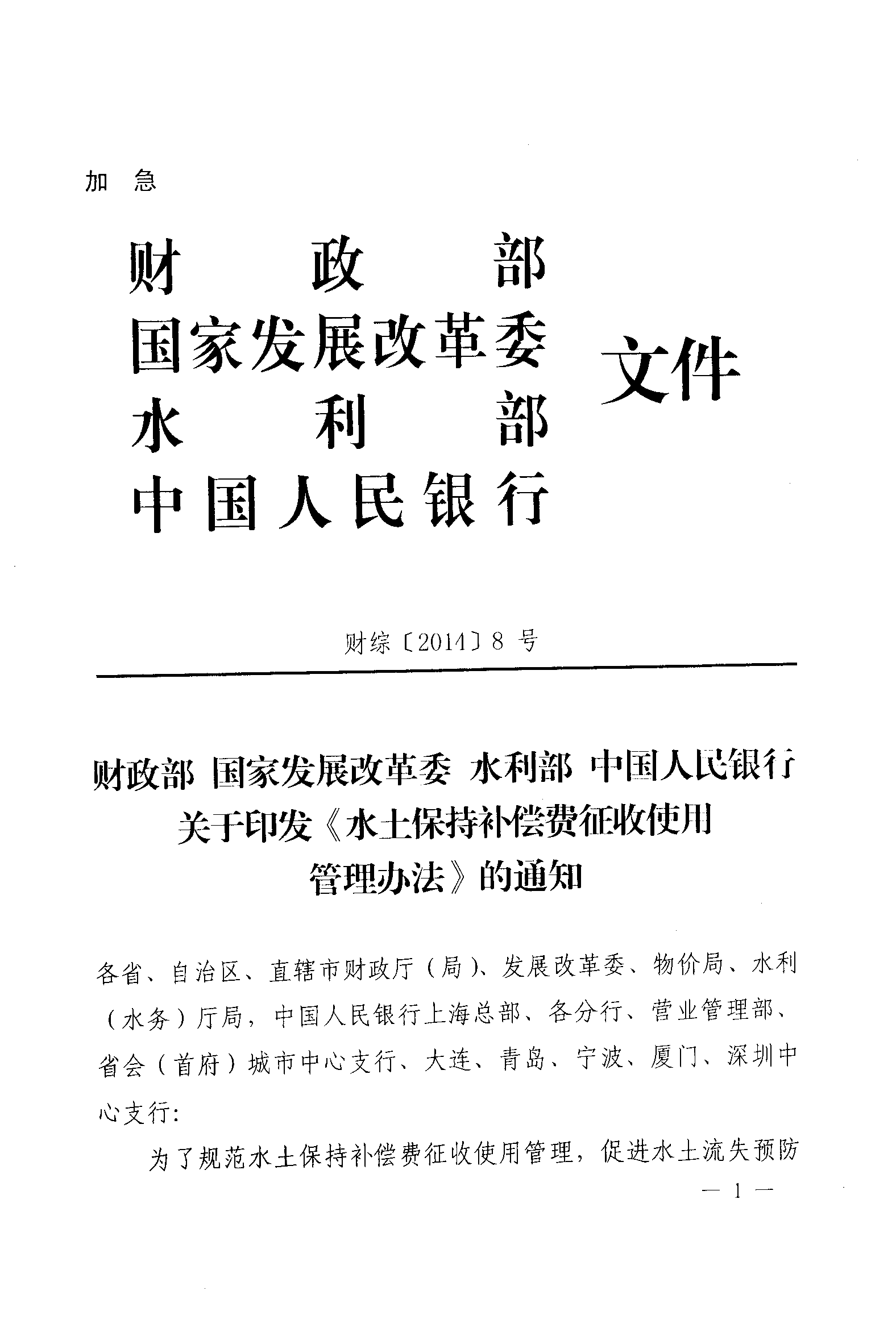 (財(cái)綜〔2014〕8號(hào))財(cái)政部 國家發(fā)展改革委 水利部 中國人民銀行關(guān)于印發(fā)《水土保持補(bǔ)償費(fèi)征收使用管理辦法》的通知.png