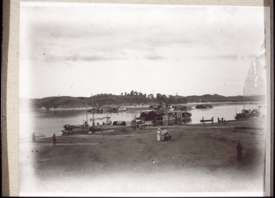 ■河源仁濟醫院創始人之一、德籍傳教士和士明等人從東江岸邊上岸。大約攝于1913年至1920年期間。原圖現藏美國南加州大學。