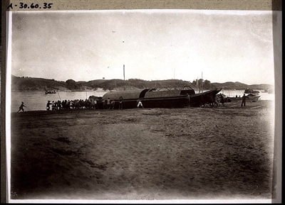■河源,東江上的木筏船,等待漲水放筏。大約攝于1904年至1920年期間。原圖現藏美國南加州大學。
