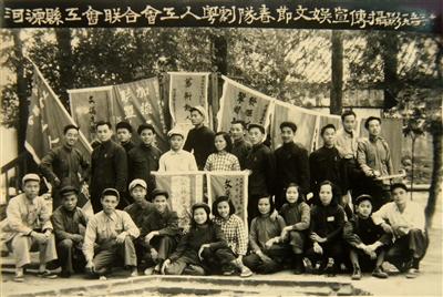 ■1954年河源縣工會聯合工人粵劇隊進行春節文娛宣傳的合照。(源城區檔案館藏)