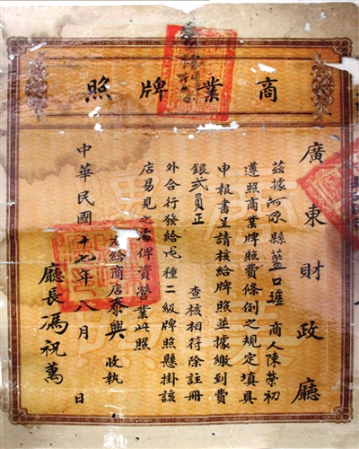 1928年,藍口圩泰興號的商業執照。