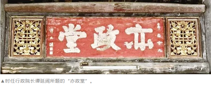 雖然不肯去譚延闿那里做官,但徐傅霖與譚延闿二人私交甚好,此前徐傅霖在老家所建“浰東小筑”,就有多處石柱刻著譚延闿所題寫的楹聯和匾額:正門上有譚延闿所題的“高士舊家”和對聯“擴鴻圖以迪前光務遵祖敬宗一派淵源溯東海;謀燕羽而治后裔勉積功累千秋世澤衍南州”;二廳石柱上是譚延闿所題的對聯:“愛茲繞屋溪山俯察仰觀寄傲有堂伴綠野;志在濟時霖雨先憂后樂賦閑何日慰蒼生。”這兩副對聯體現了舊時政界人士既懷“濟世之心”又有“歸田園”優游度歲的心理。上廳有木匾,上書“亦政堂”;二廳屏風上書“文明進步”,均是譚延闿題于民國十年(1921年)。