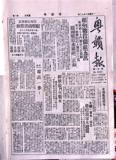1949年4月,解放大軍已從四面八方渡過長(zhǎng)江,國(guó)內(nèi)局勢(shì)變化迅速,一日千里。為及時(shí)報(bào)道進(jìn)程,《粵贛報(bào)》由三日刊改為兩日刊。密集的報(bào)道,令讀者十分關(guān)注迎軍事宜。