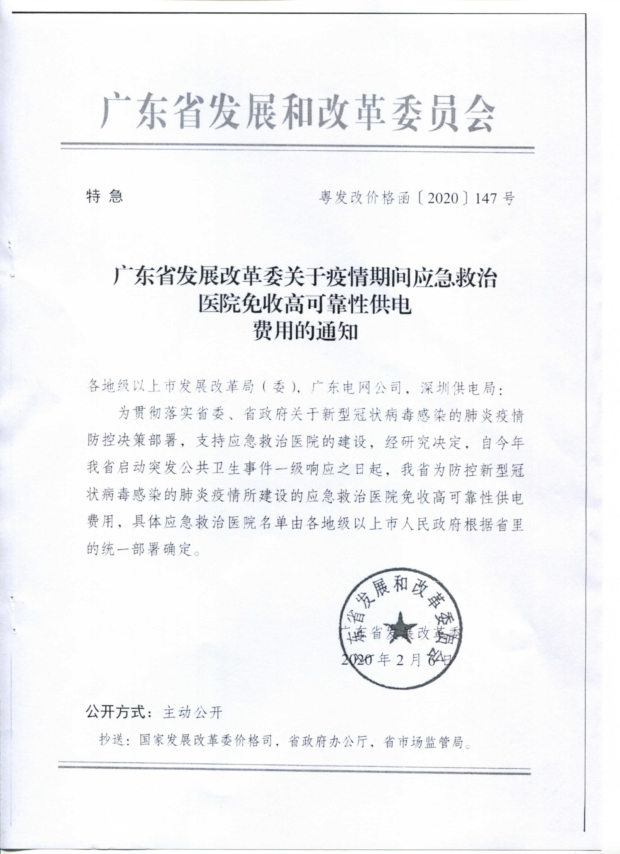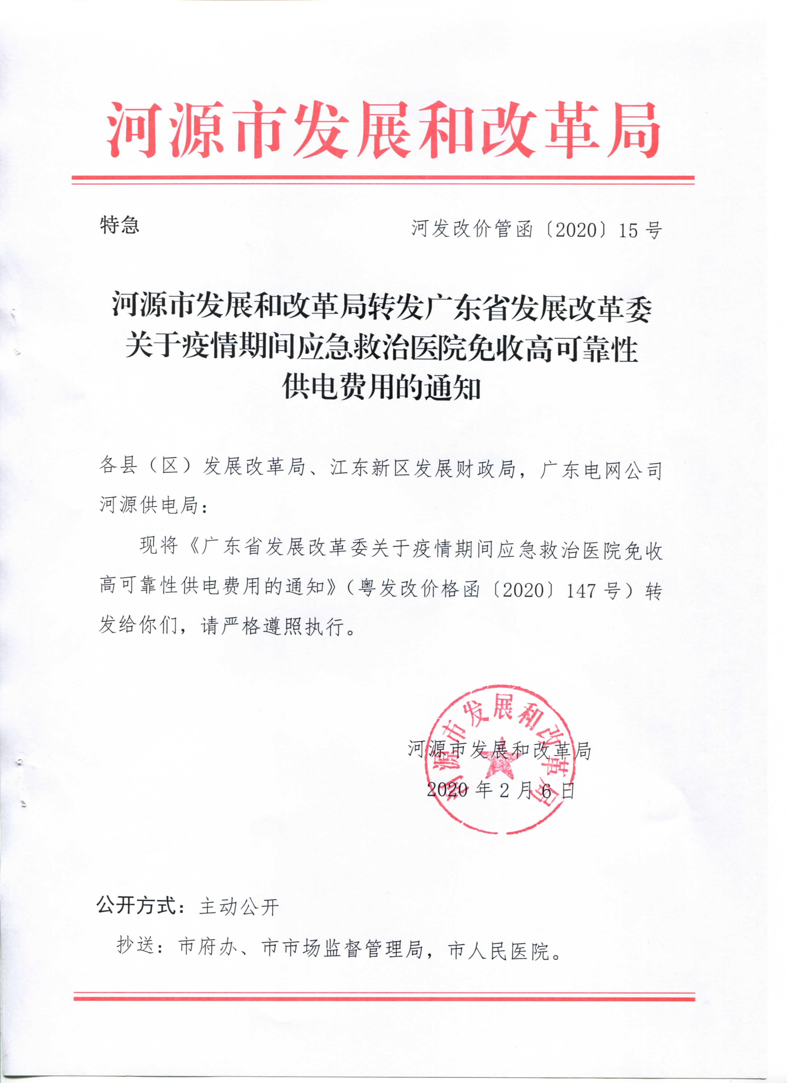 河源市發展和改革局轉發廣東省發展改革委關于疫情期間應急救助醫院免收高可靠性供電費用的通知