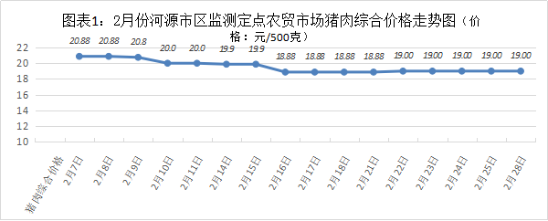 一、肉類價格微漲。2月天氣寒冷又逢節假日,肉類需求量增加,總體價格微漲,中下旬后價格逐漸回落。市區八個畜類品種月均綜合價格35.25元(每500克,下同),環比微漲0.97%豬肉市場零售月均綜合價格19.55元,環比漲1.19%零售價格漲跌互現(圖表1排骨26.16元、有皮上肉16.19,環比漲7.39%0.31%;精瘦肉19.38元、肋條肉16.47元、環比分別降1.67%3.4%;牛肉54.16元、牛肉(腱子肉)60.31元、牛腩45.16元、羊肉44.19元,環比分別漲0.3%0.52%0.36%2.65%
