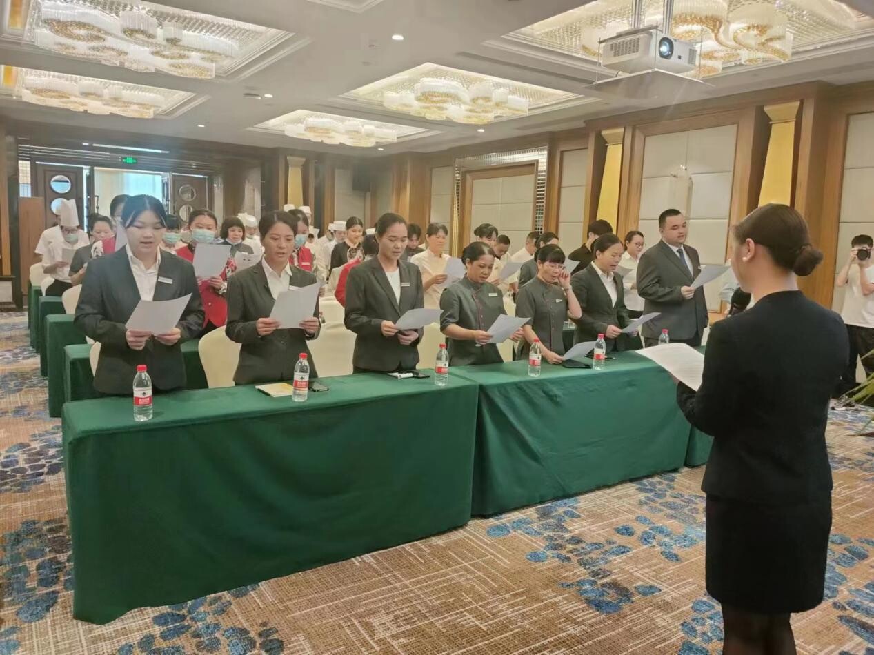在酒店餐飲部部長帶領下,參會的餐飲從業人員宣讀了個人承諾書,現場許下“制止餐飲浪費 弘揚節儉新風”的承諾。大家紛紛表示,通過此次主題講座活動對“反對浪費·崇尚節約”有了更深層涵義的理解,牢固樹立反對餐飲浪費意識,切實承擔好主體責任及時制止浪費行為,以實際行動踐行承諾。