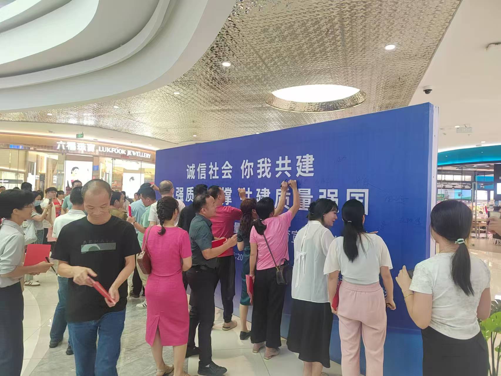 活動中,工作人員通過設立咨詢臺、懸掛橫幅、發放宣傳材料等方式,向廣大市民宣傳普及產品質量安全、誠信經營、誠信興商等知識,提醒消費者關注商品的質量安全,提升消費者權益保護意識。并在現場舉行“誠信社會 你我共建”倡議簽名活動,引導企業誠信經營,文明經商,牢固樹立“重質量,講信譽”的經營理念,激發企業內生動力和創新活力,鼓勵更多企業走以質取勝的發展道路,推進質量誠信體系建設,提高企業質量誠信水平,形成以質量為本、以誠實守信為核心的企業文化,增進市民消費信心,不斷優化營商環境。
