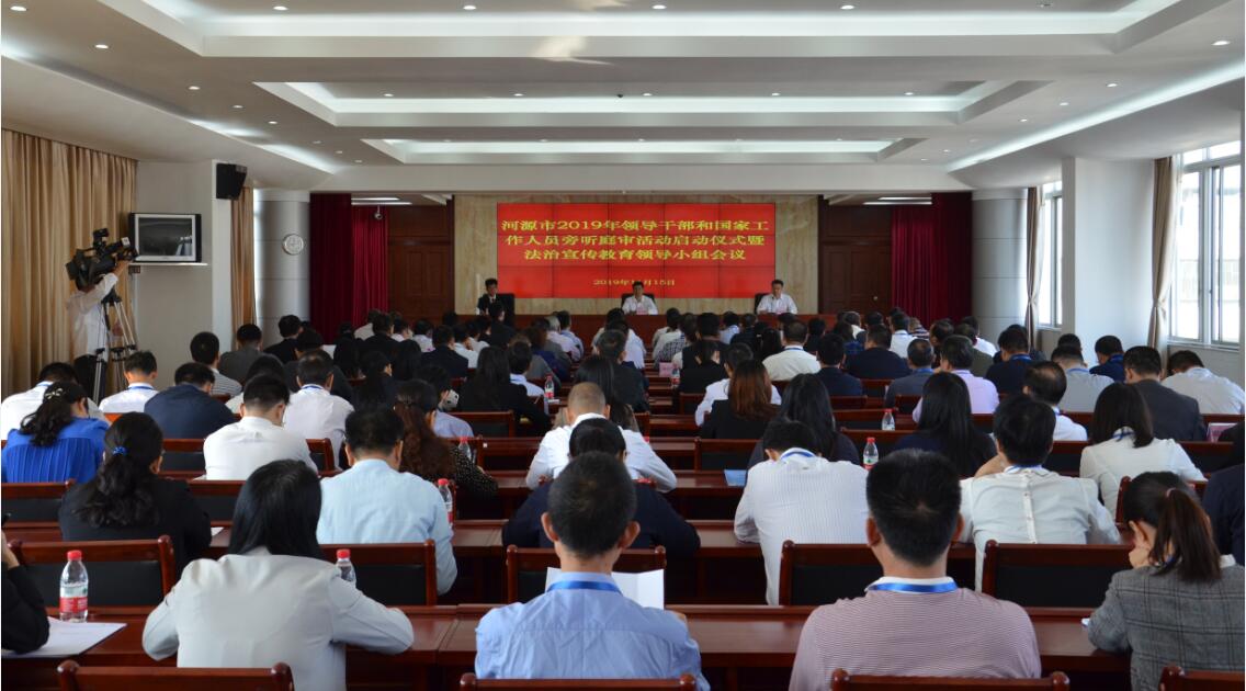 為推動國家工作人員旁聽庭審活動常態化制度化,切實提升領導干部依法行政、依法執政意識,11月15日,市司法局、市普法辦聯合市法院組織開展了2019年全市領導干部和國家工作人員旁聽庭審活動啟動儀式暨法治宣傳教育領導小組會議。市政府副市長、公安局局長林少威出席并講話,市法院黨組書記、院長周定挺致辭,市司法局黨組書記、局長羅良海主持了會議。各縣區司法局局長、分管副局長,市法治宣傳教育領導小組成員單位分管領導、聯絡員,市直和中央、省駐河源有關單位分管領導、科級干部共140余人參加了會議,各單位還通過中國庭審直播網在本單位同步收看了庭審直播。