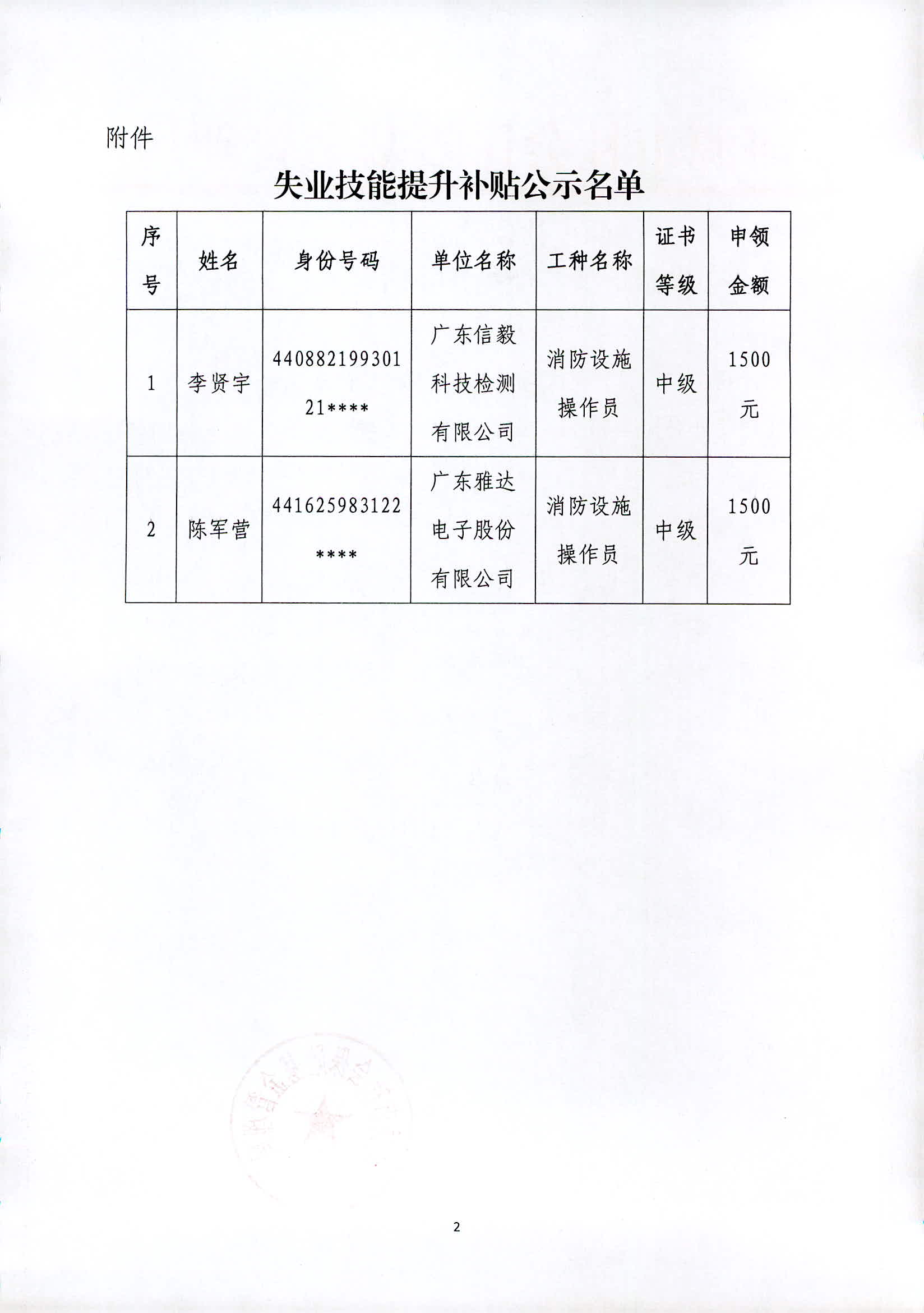 河源市社會(huì)保險(xiǎn)基金管理局關(guān)于發(fā)放失業(yè)技能提升補(bǔ)貼人員名單的公示