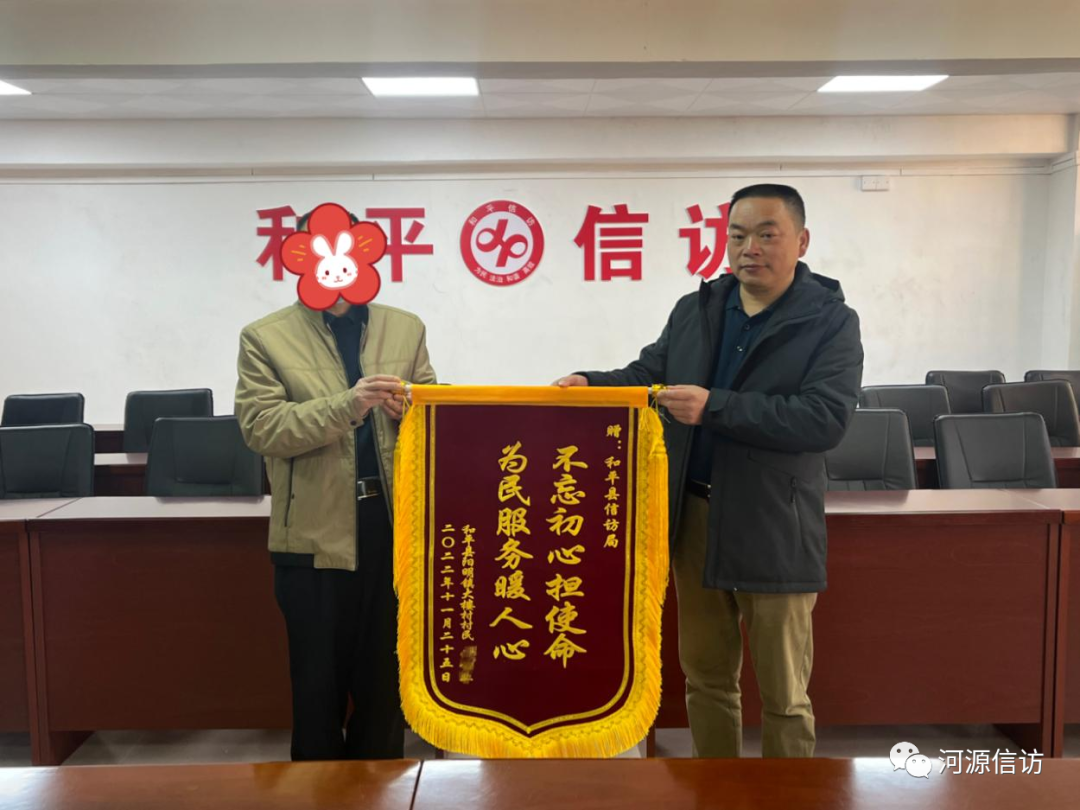 近日,群眾何某某將一面寫有“不忘初心擔(dān)使命,為民服務(wù)暖人心”的錦旗送到和平縣信訪局,對該縣信訪局認(rèn)真履職,為民解難,為其解決訴求表示衷心感謝。