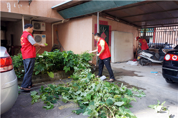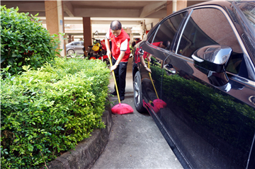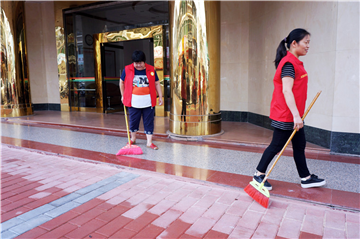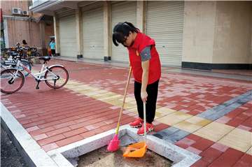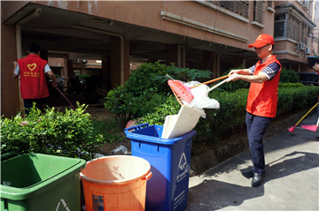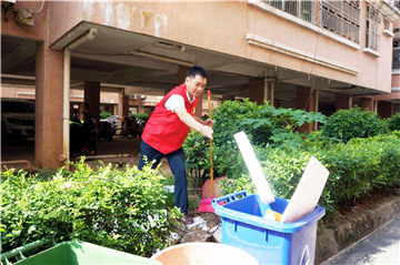 2017年9月9日上午,市公積金中心志愿服務隊成員到長安街金安小區開展清潔活動。