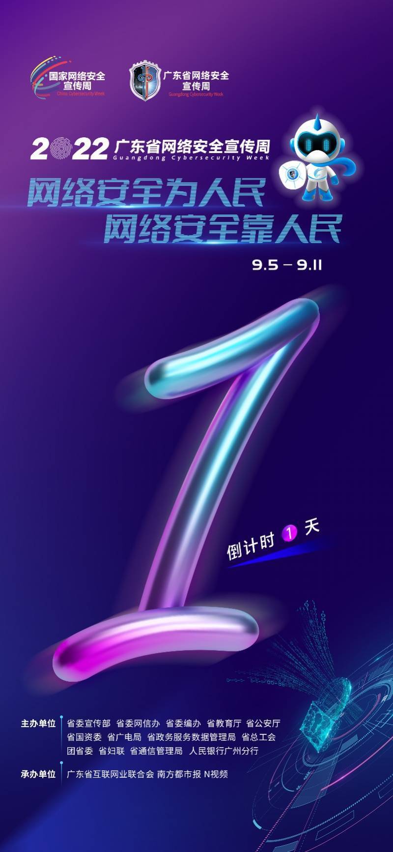 2022年廣東省網絡安全宣傳周將于9月5日至11日舉行。