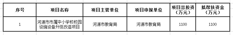 關于2024年度幫扶協作資金項目計劃(河源市市屬中小學校校園設施設備升級改造項目)的公示