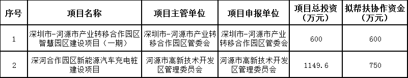 為做好深圳對(duì)口幫扶協(xié)作河源工作,不斷推進(jìn)產(chǎn)業(yè)協(xié)作的高質(zhì)量發(fā)展,經(jīng)研究,深圳對(duì)口幫扶協(xié)作河源指揮部擬將“深圳市-河源市產(chǎn)業(yè)轉(zhuǎn)移合作園區(qū)智慧園區(qū)建設(shè)項(xiàng)目(一期)”、“深河合作園區(qū)新能源汽車充電樁建設(shè)項(xiàng)目”2個(gè)項(xiàng)目列入2024年度幫扶協(xié)作資金項(xiàng)目計(jì)劃(詳見附件)。根據(jù)有關(guān)規(guī)定,現(xiàn)予以公示,自2024年12月3日至2024年12月9日止。