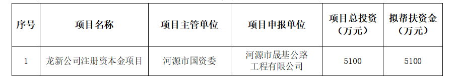 幫扶協(xié)作資金項(xiàng)目計(jì)劃(龍新公司注冊(cè)資本金項(xiàng)目)情況一覽表