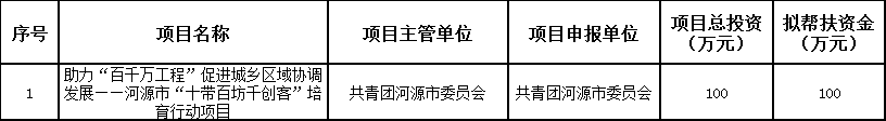 2025年度幫扶協(xié)作資金項目計劃(助力“百千萬工程”促進城鄉(xiāng)區(qū)域協(xié)調(diào)發(fā)展——河源市“十帶百坊千創(chuàng)客”培育行動項目)情況一覽表
