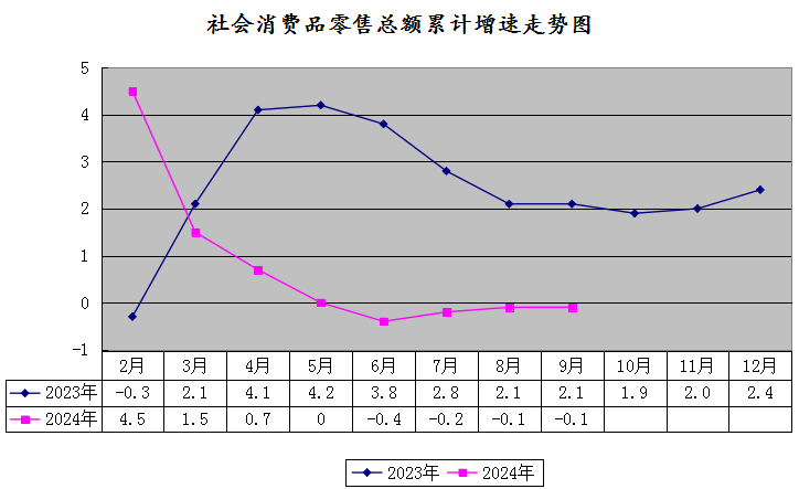(一)日常生活類商品及石油類商品零售增速比上月回落。9月份,糧油食品類、飲料類商品零售分別增長5.0%、5.5%,比上月回落18.0個、2.5個百分點,糧油食品類商品拉動限額以上零售額增長作用比上月減弱1.3個百分點;煙酒類、服裝鞋帽類、石油及制品類商品零售分別下降20.5%、9.9%、20.2%,分別拉低限額以上零售額增速0.5個、0.1個、6.6個百分點,煙酒類、石油類商品拉低限額以上零售額增速分別比上月擴大0.8個、2.2個百分點。