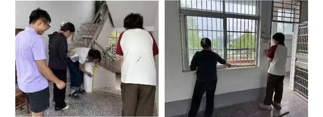 團(tuán)隊(duì)深入留洞村廢棄小學(xué),對(duì)3100㎡建筑展開精細(xì)測(cè)繪與空間分析,基于實(shí)地量房數(shù)據(jù)提出“森林徒步游學(xué)營(yíng)”改造方案。一層以客家飲食文化為核心,改造為研學(xué)餐廳與集路線咨詢、裝備補(bǔ)給功能于一體的游客中心;二層創(chuàng)新采用竹編透光隔斷劃分宿舍區(qū),并將原教室轉(zhuǎn)型為自然手作工坊;屋頂增設(shè)觀星平臺(tái)與交流區(qū),延伸自然教育場(chǎng)景。設(shè)計(jì)保留磚瓦肌理,融入共享沙龍、戶外營(yíng)地等新功能,實(shí)現(xiàn)廢棄空間向多功能研學(xué)綜合體的蛻變。