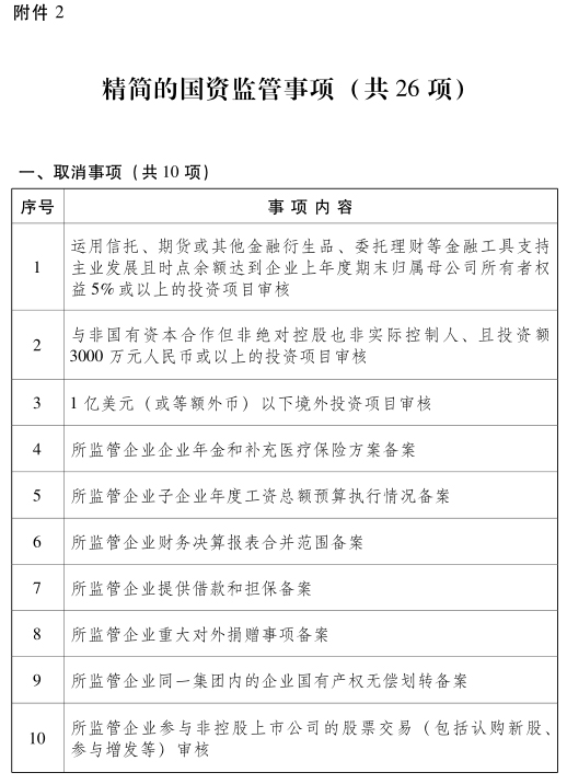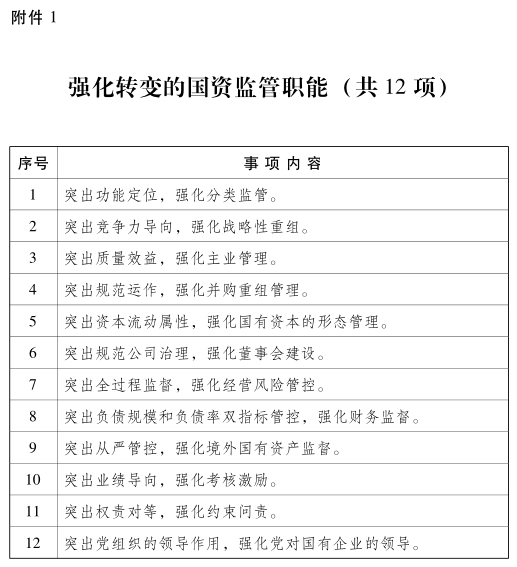 附件:1.強化轉變的國資監管職能(共12項) 2.精簡的國資監管事項(共26項)
