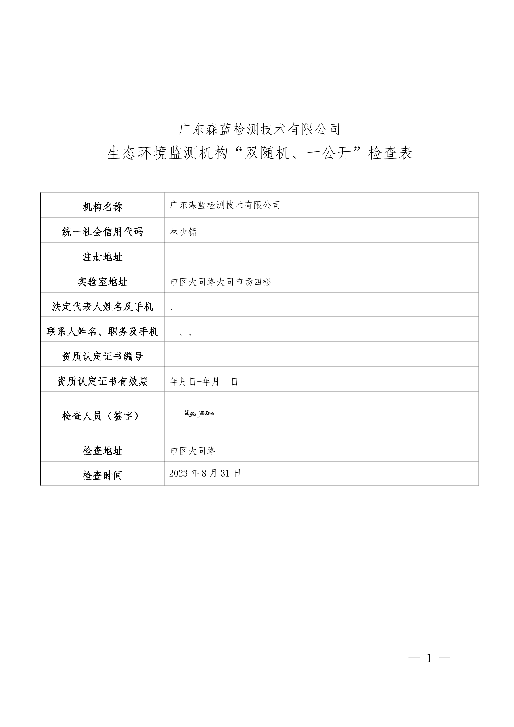 生態環境監測機構“雙隨機、一公開”檢查結果公示
