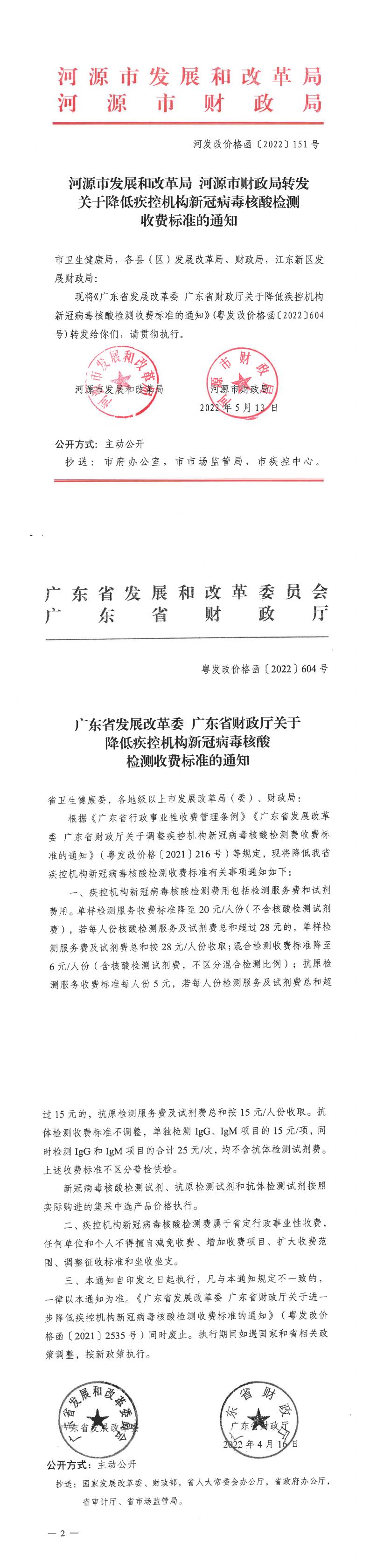 河源市發展和改革局 河源市財政局轉發關于降低疾控機構新冠病毒核酸檢測收費標準的通知