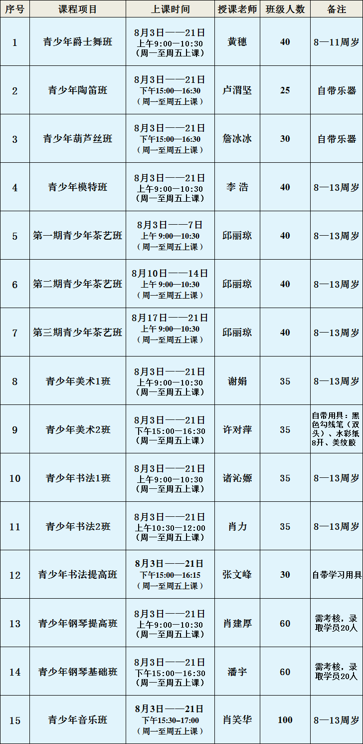 為深入貫徹落實黨的十九大精神、習近平總書記對廣東重要講話和重要指示批示精神,積極培育和踐行社會主義核心價值觀,大力實施文化惠民工程,提升廣大青少年的文化藝術素養,培養未成年人良好的興趣愛好,河源市文化館開展2020年青少年暑期公益培訓班。