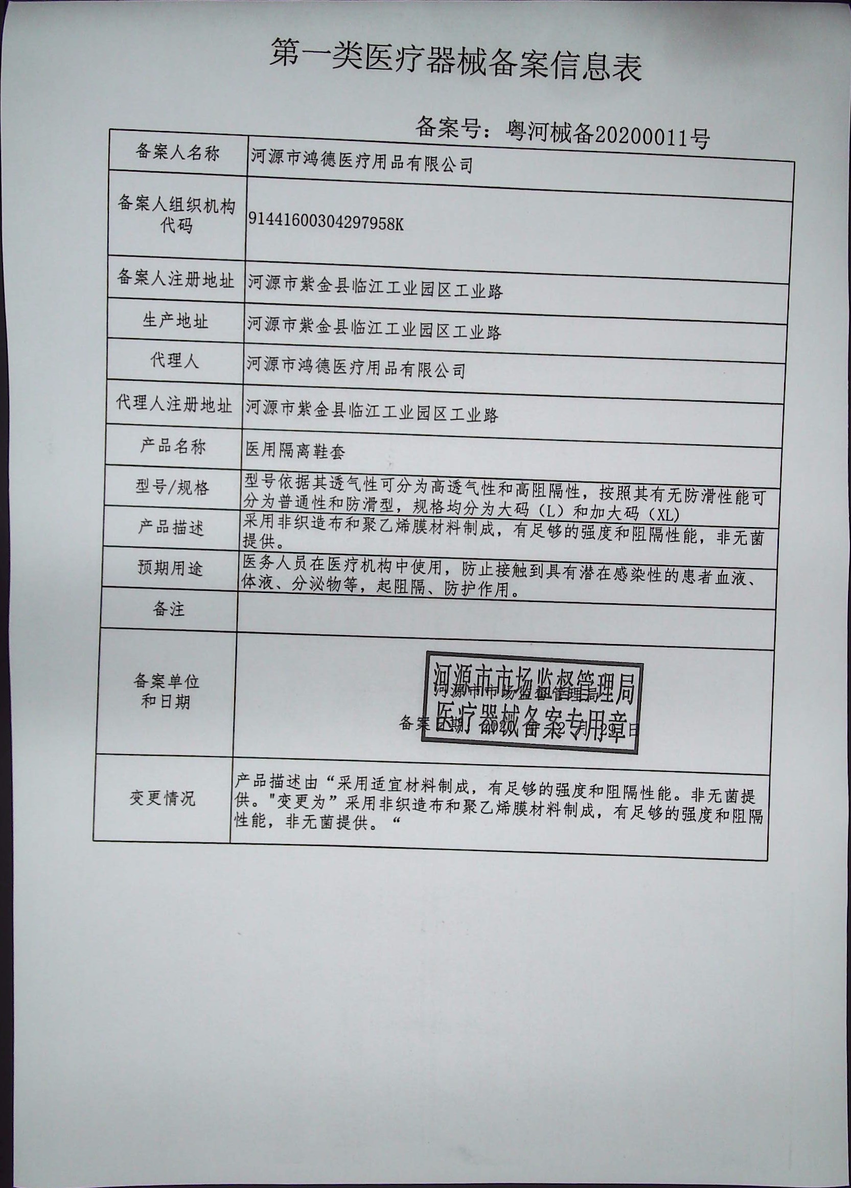 根據(jù)《醫(yī)療器械監(jiān)督管理條例》、《醫(yī)療器械注冊管理辦法》等有關(guān)規(guī)定,現(xiàn)將“醫(yī)用隔離鞋套”等5個第一類醫(yī)療器械產(chǎn)品備案(或者變更備案)信息予以公告。