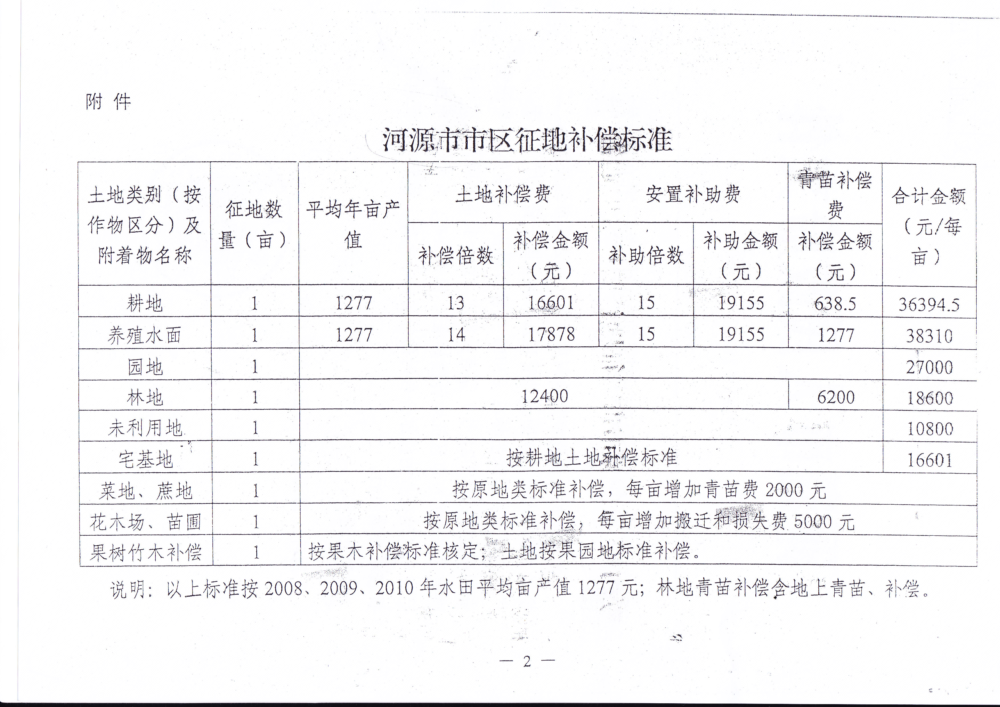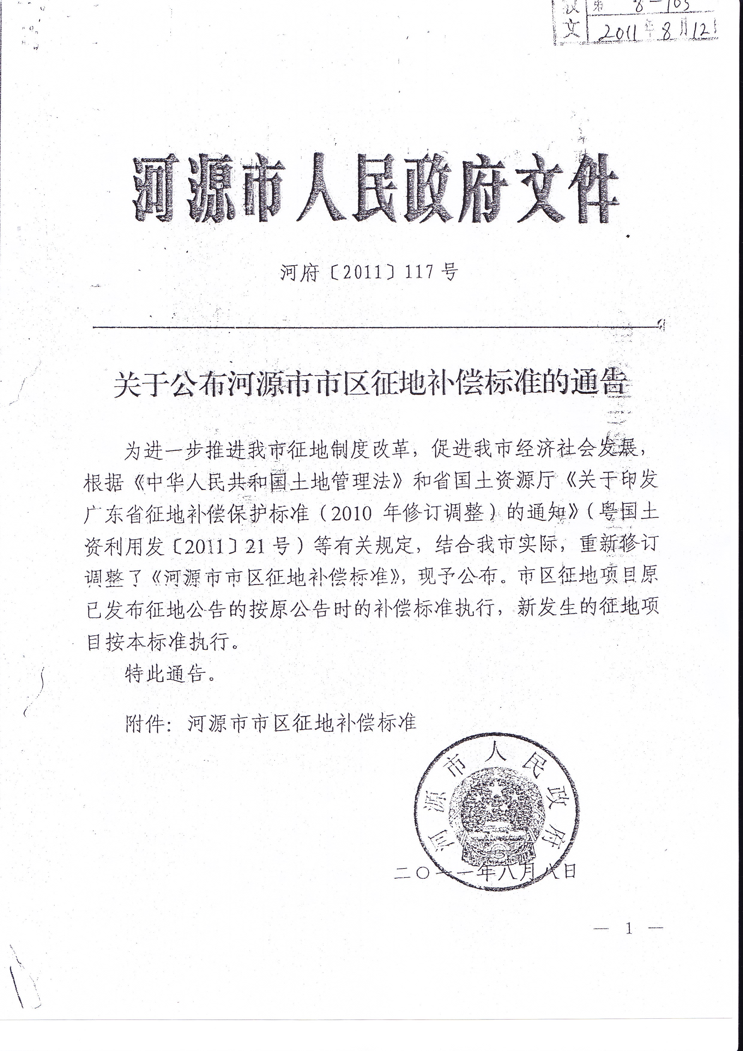 關于公布河源市市區征地補償標準的通告