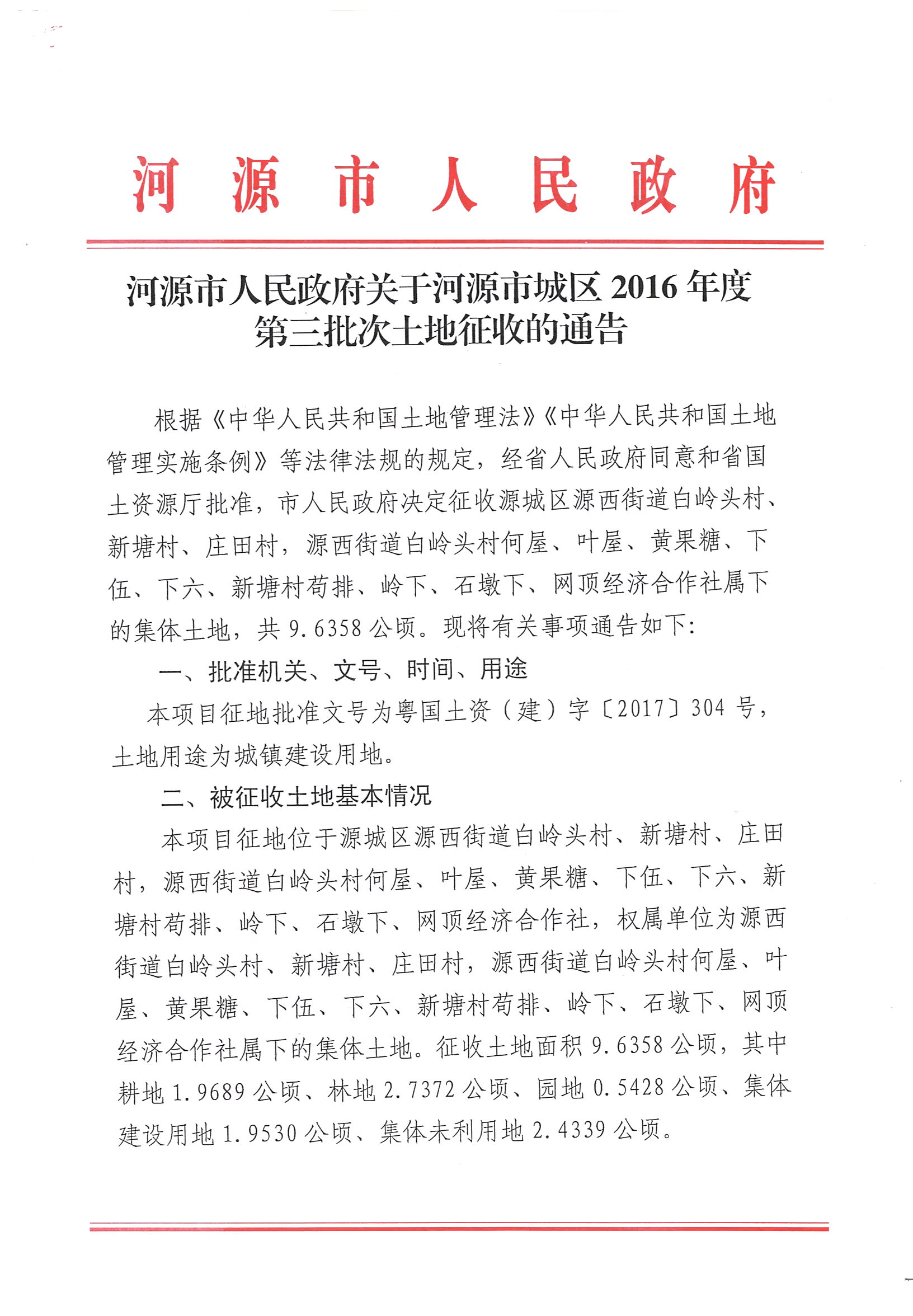 河源市人民政府關于河源市城區2016年第三批次土地征收的公告