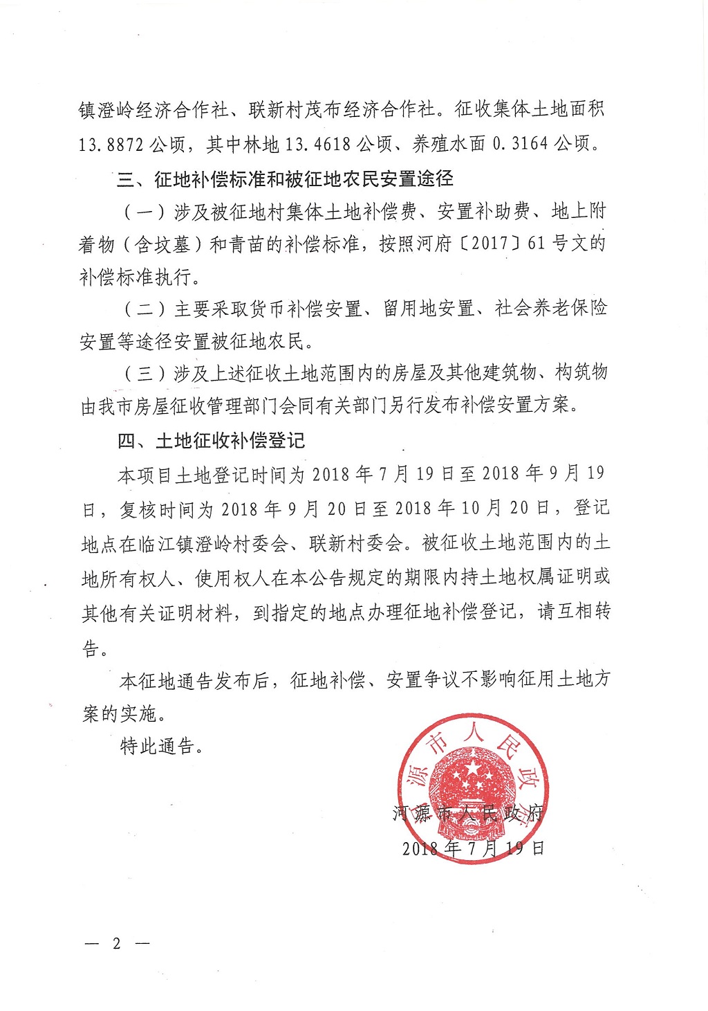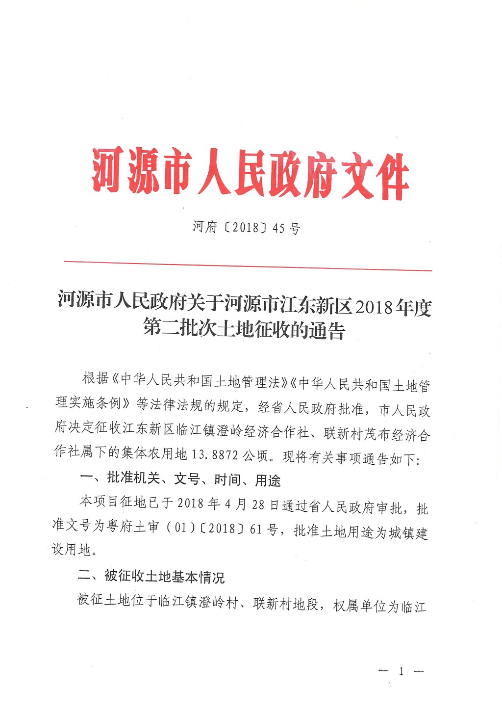 河源市人民政府關于河源江東新區2018年度第二批次土地征收公告