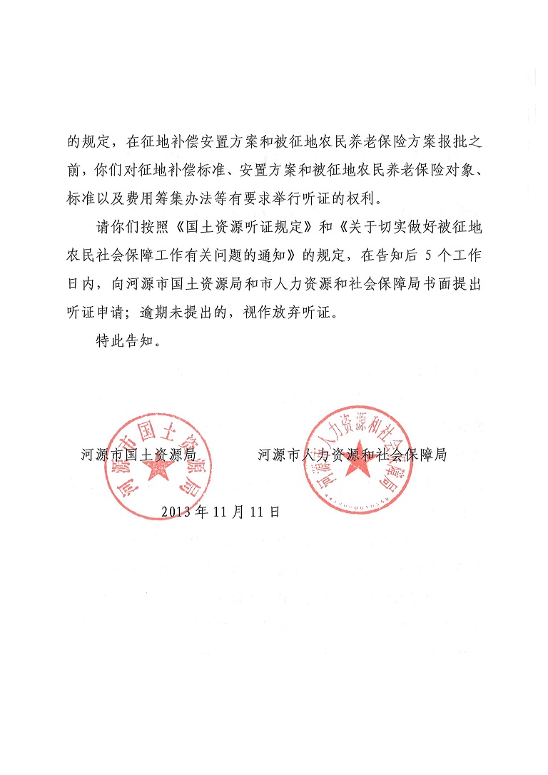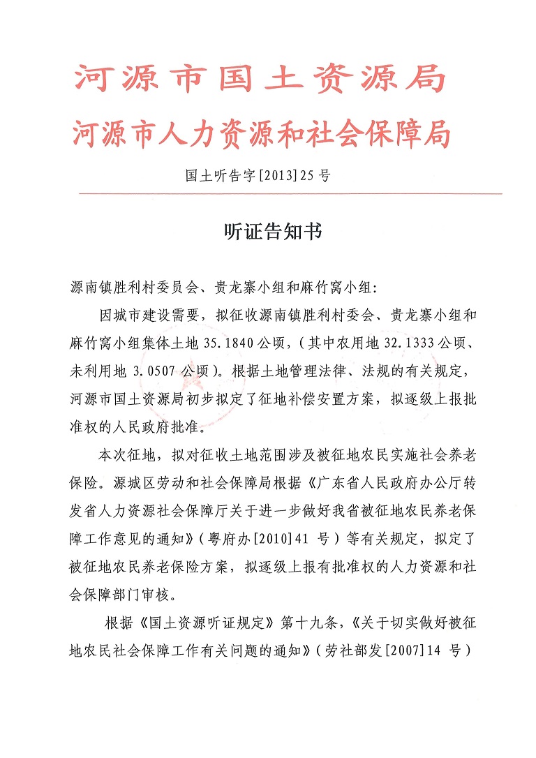 河源市城區(qū)2013年度第二十五批次城鎮(zhèn)建設(shè)用地項(xiàng)目聽證告知書