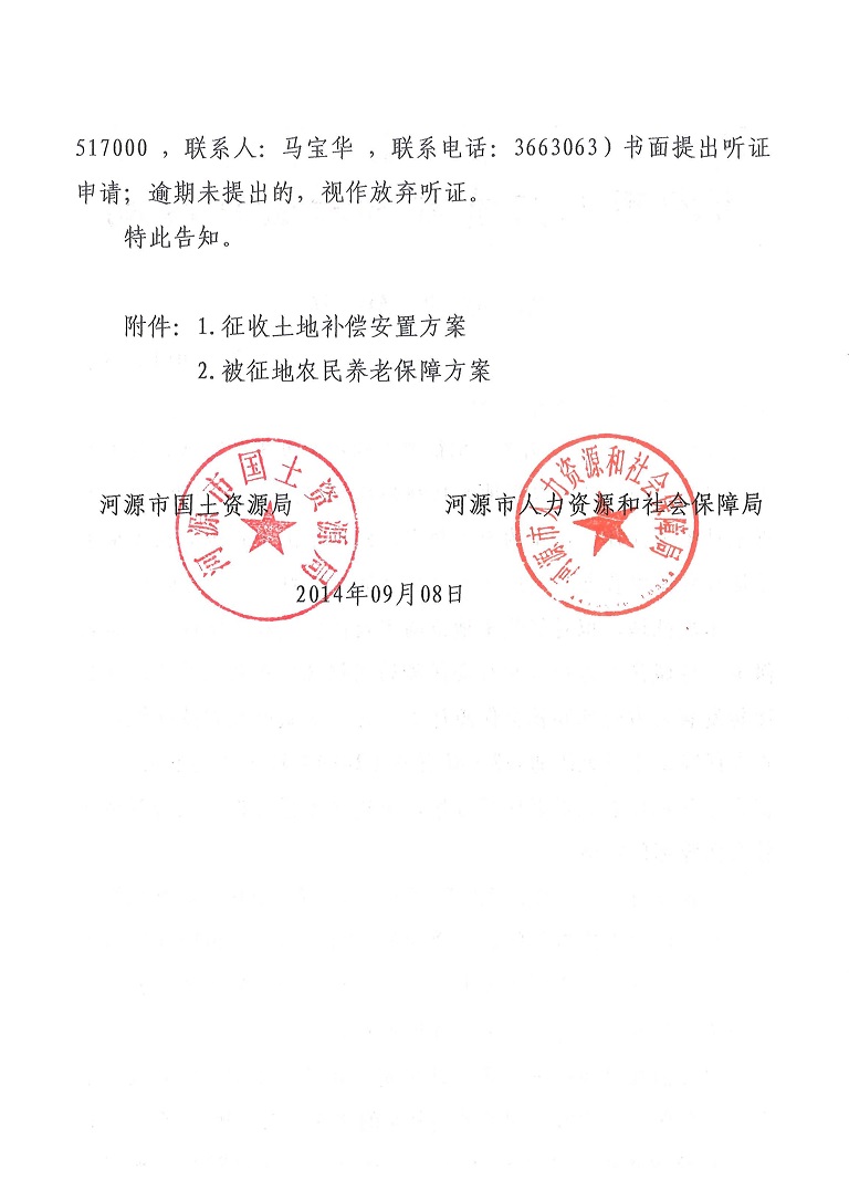 河源市城區(qū)2014年度第八批次城鎮(zhèn)建設用地聽證告知書