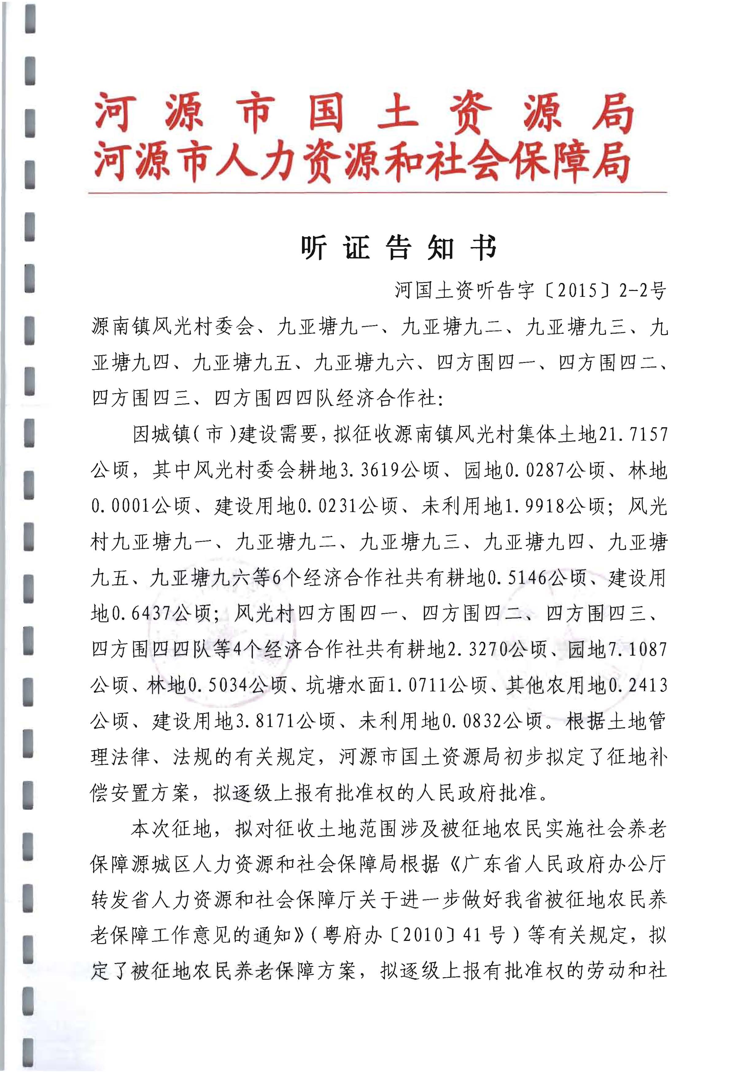 河國土資聽告字[2015]2-2號