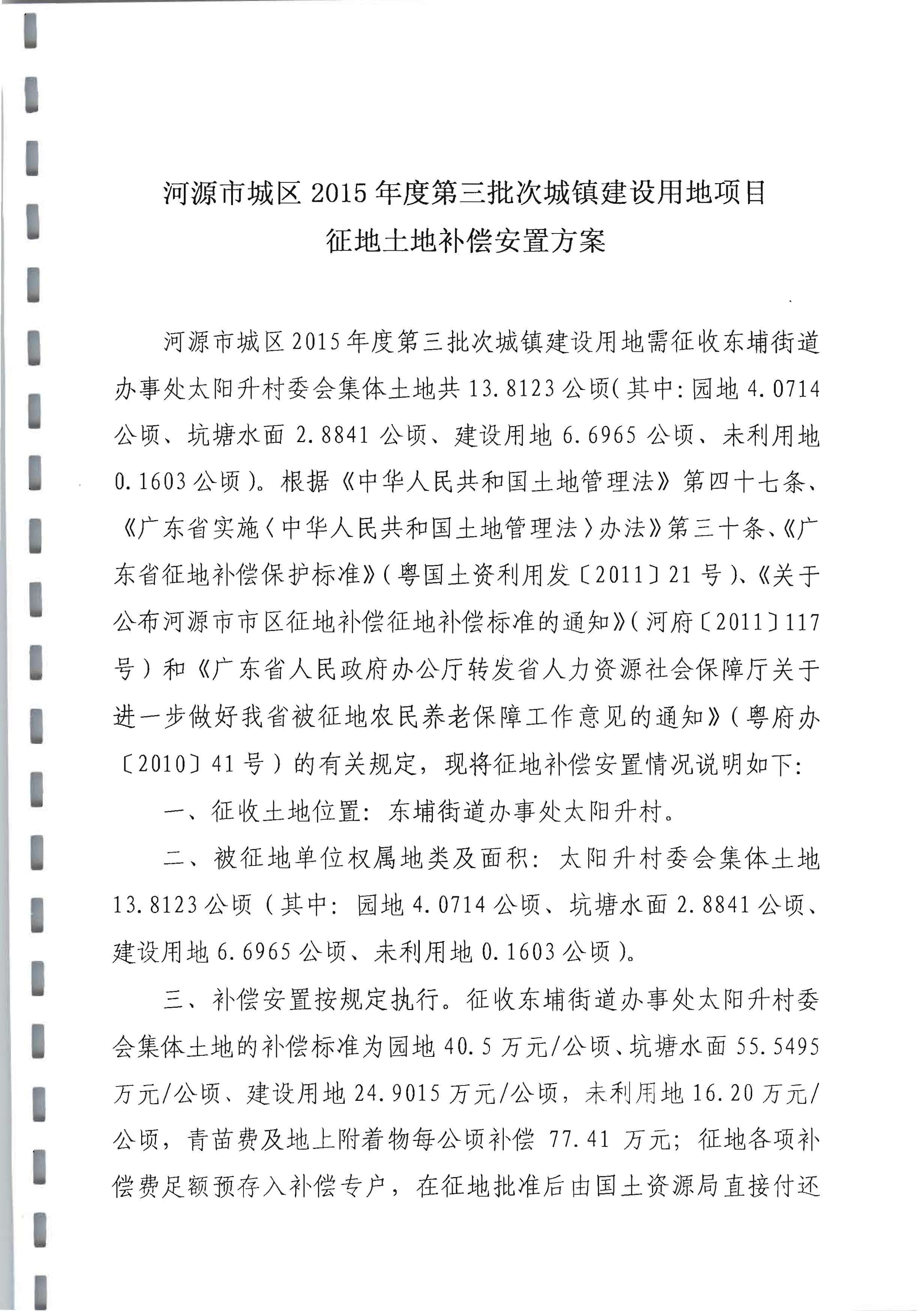 河源市城區2015年度第三批次城鎮建設用地項目征地土地補償安置方案