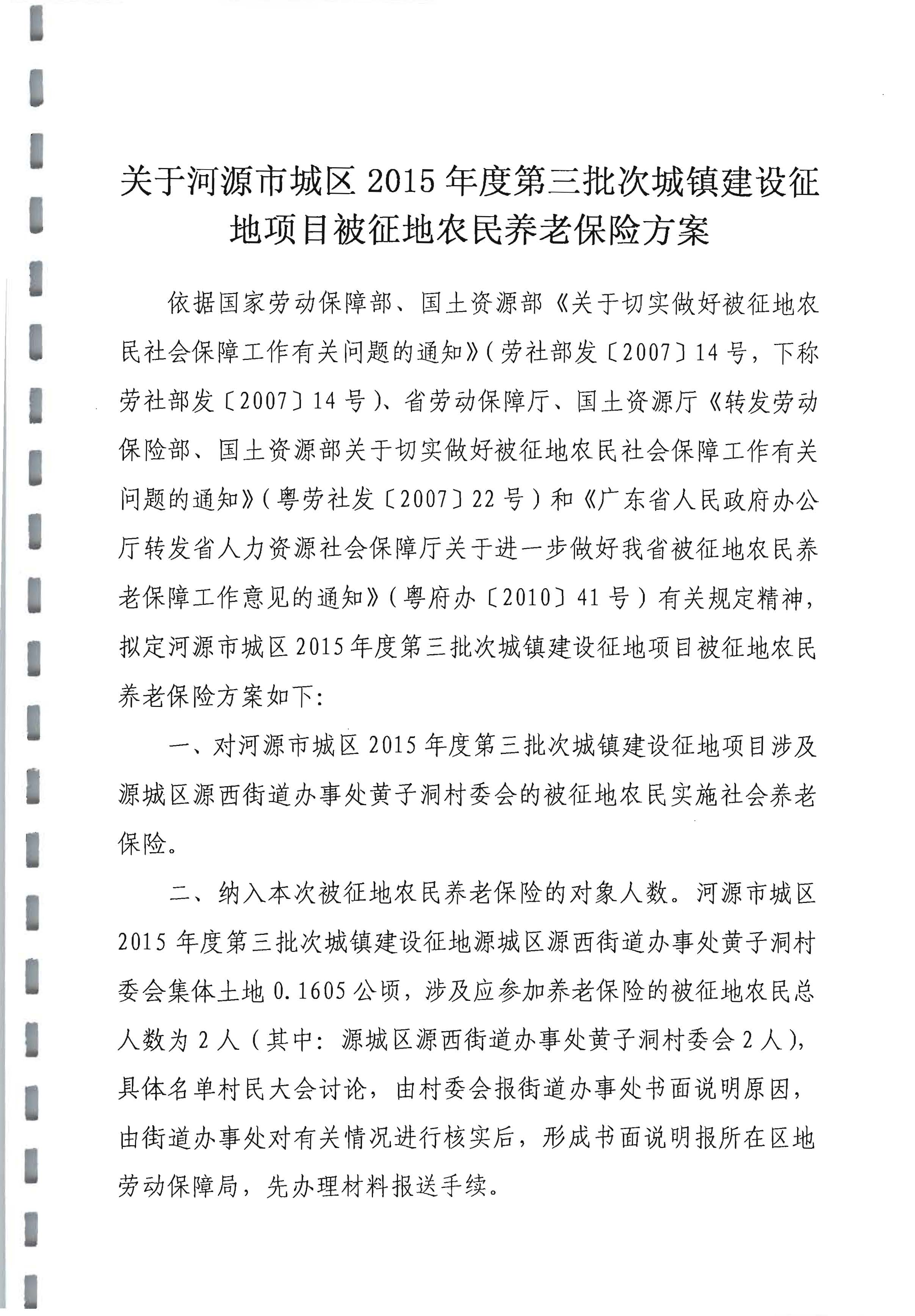 關(guān)于河源市城區(qū)2015年度第三批次城鎮(zhèn)建設(shè)征地項目被征地農(nóng)民養(yǎng)老保險方案