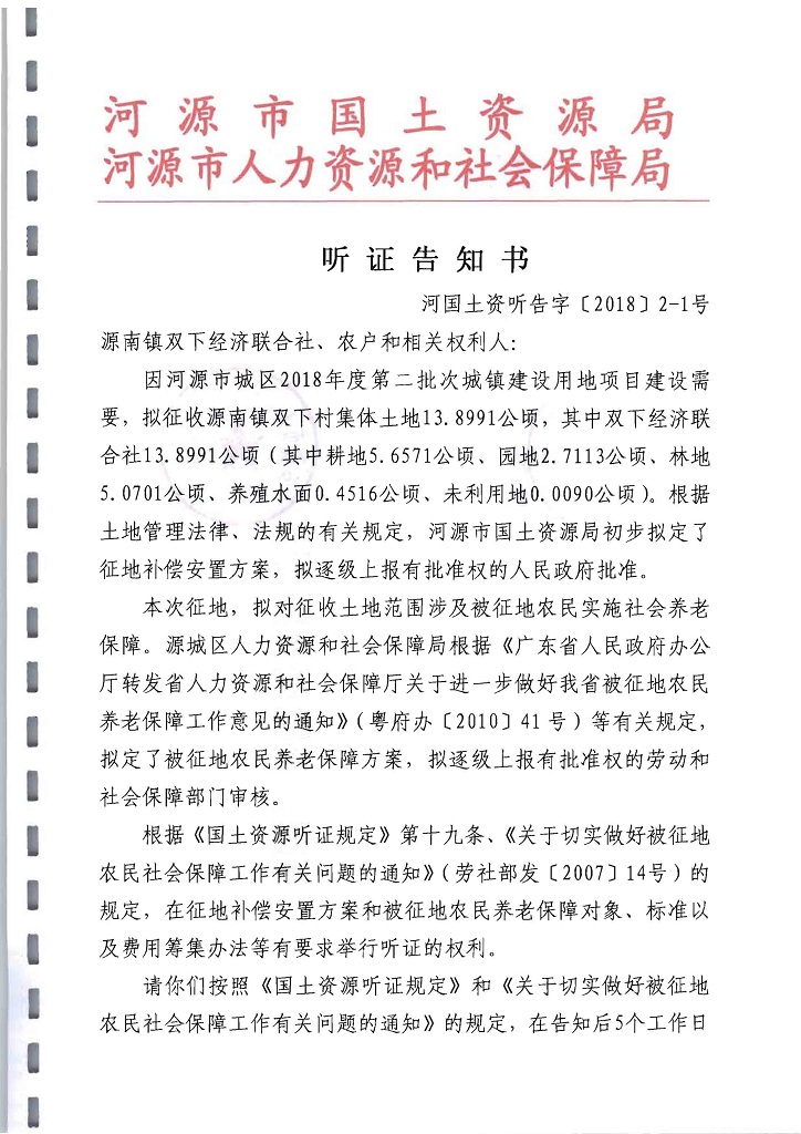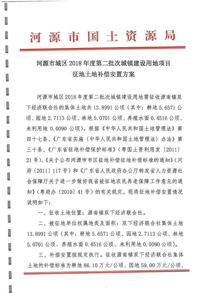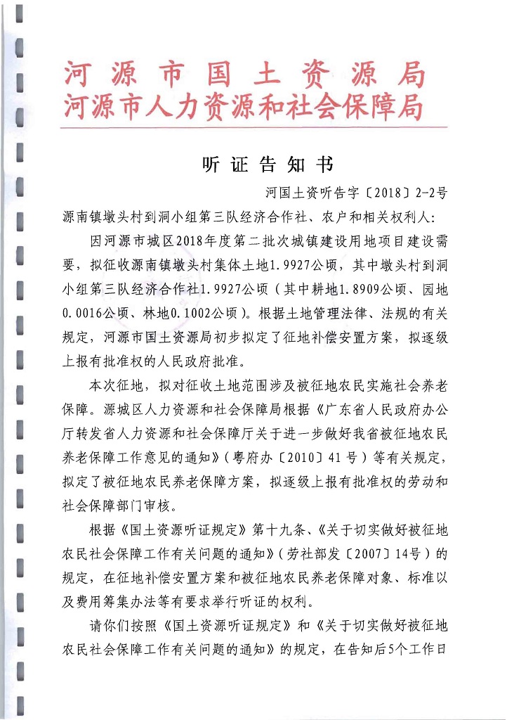河源市人民政府關于河源市城區2018年第二批次土地征收聽證信息