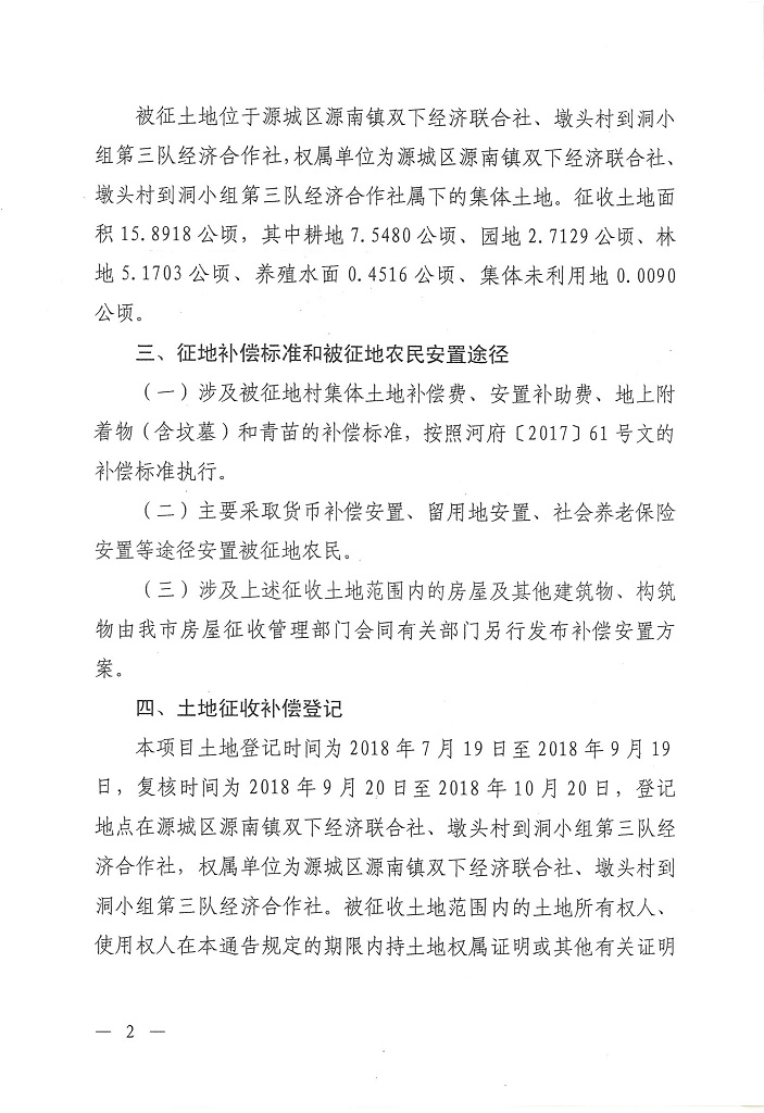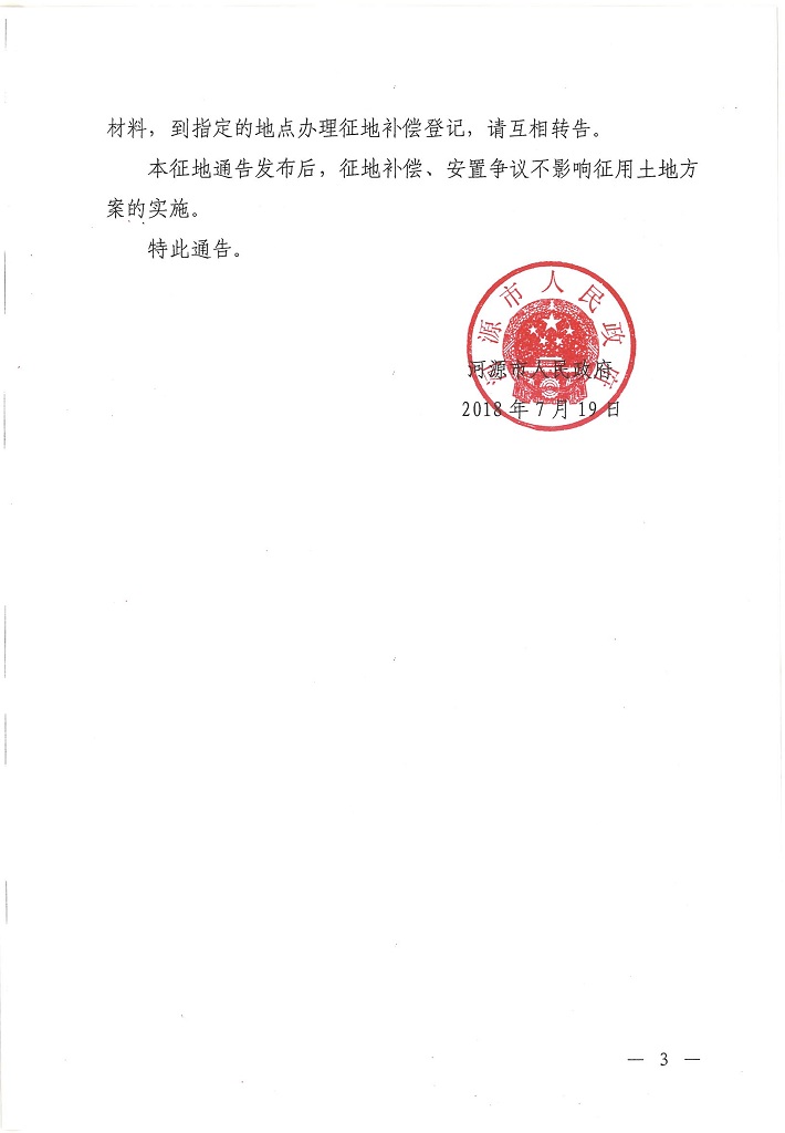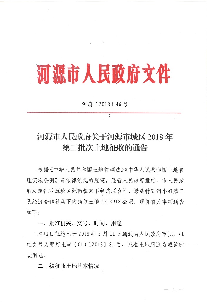 河源市人民政府關(guān)于河源市城區(qū)2018年第二批次土地征收公告